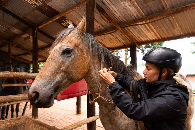 Um 7:00 Uhr beginnst du mit der Arbeit im Stall. Mit den anderen Volunteers machst du dich auf dem Weg zum Ausmisten, Fellpflege und Säubern der Reitutensilien.